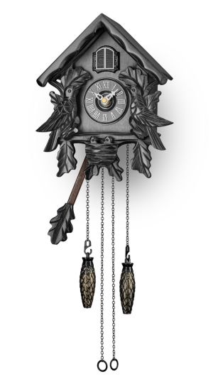 THE CUCKOO: The bird appears each hour, flaps its wings and sings. As the cuckoo sings, you can hear the sound of the forest in the background. The number of cuckoo calls indicates the coming hour.
